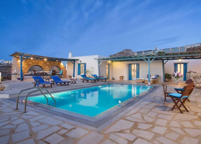 Det finns te-/kaffebryggare samt ett komplett kök. I köket finns även vattenkokare, kylskåp och ugn. Hippie Fish serverar grekiska specialiteter och ligger cirka 2 km bort. Upptäck staden med biluthyrning, som finns på plats, eller koppla av med saltvattenpool, utegrill och trädgård. För avkoppling finns bland annat inomhuspool. Villan erbjuder leksaker och bordsspel för barnens underhållning.